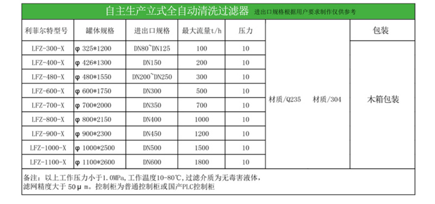 重力雜質(zhì)刷式自清洗過濾器選型規(guī)格表